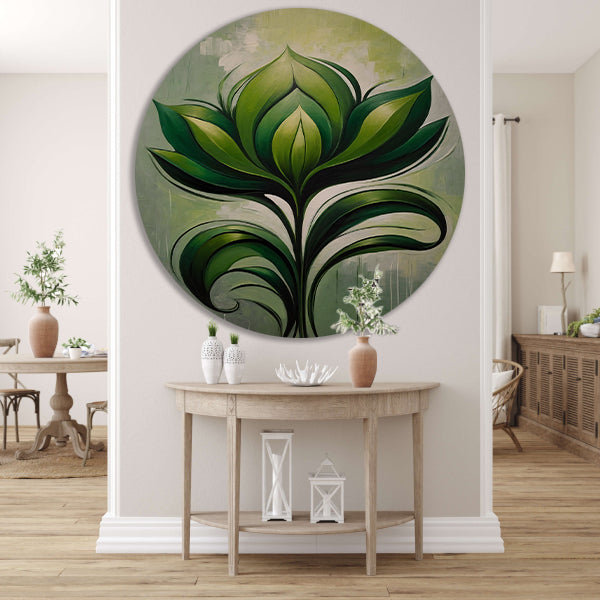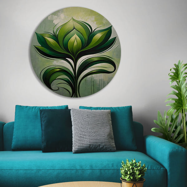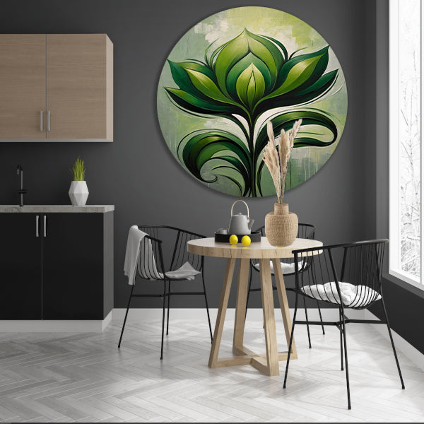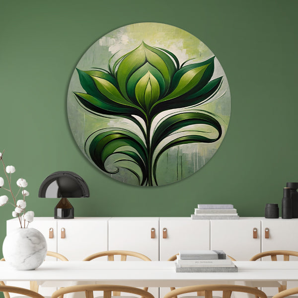 Abstracte Bloeiende Groene Bloem aluminium muurcirkel