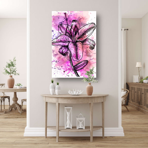 Abstracte bloem in levendige roze tinten canvas met baklijst