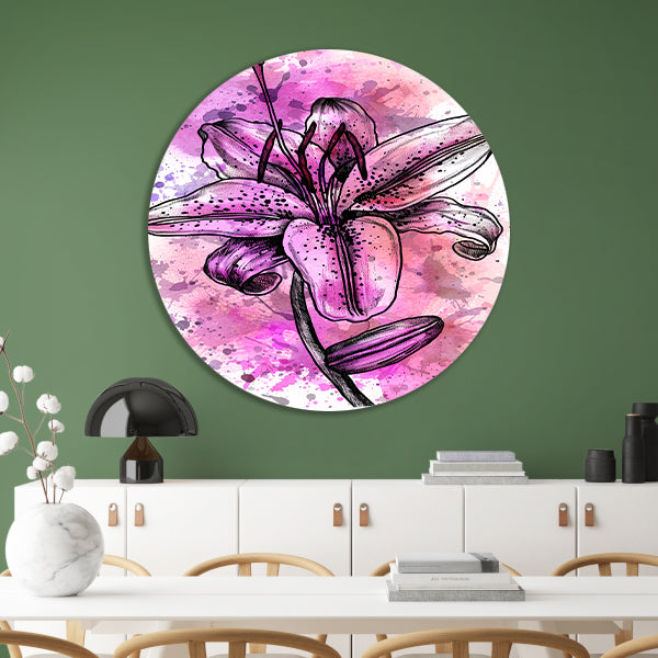 De levendige roze tinten van de abstracte bloem zorgen voor een frisse en vrolijke uitstraling en brengen meteen een beetje vrolijkheid in je interieur. Deze muurcirkel wordt geleverd met een gratis ophangplaat, zodat je hem gemakkelijk aan de muur kunt bevestigen.