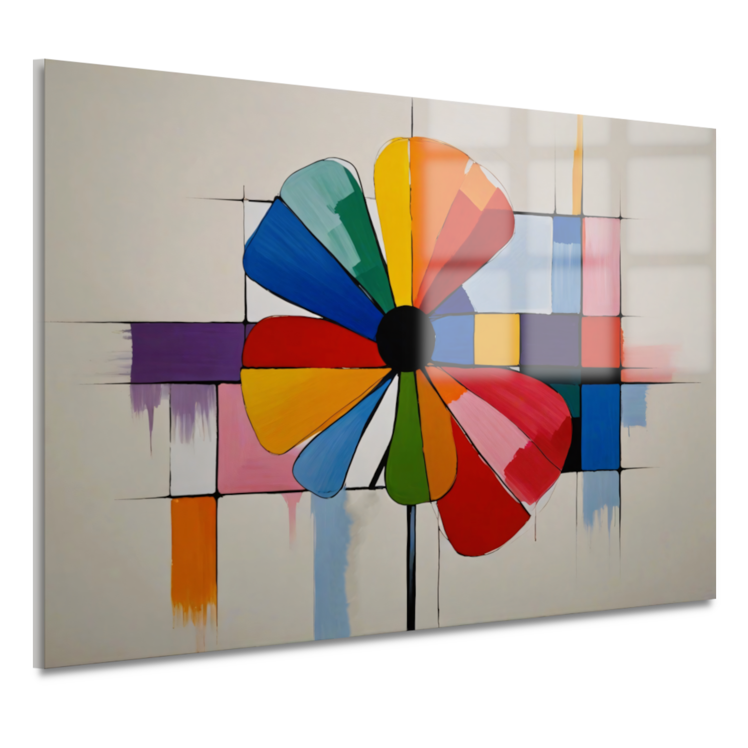 Abstracte Bloem in Mondriaan Stijl acrylglas