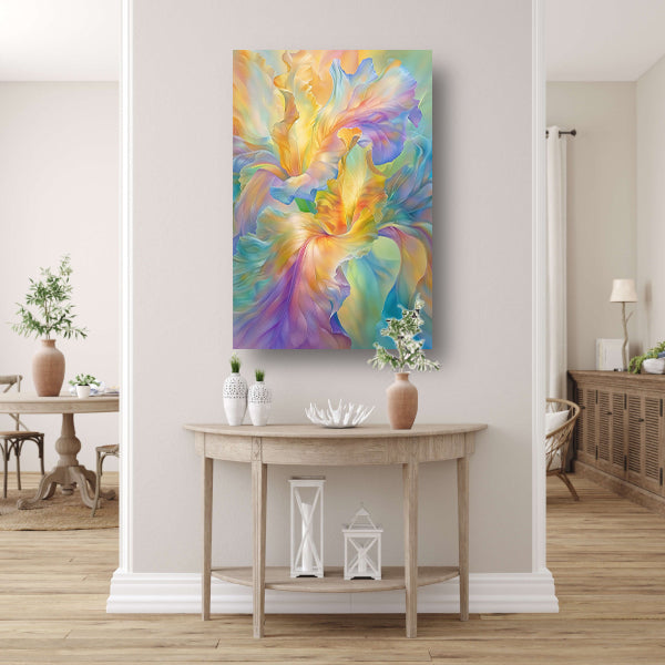 Abstracte bloem in pastelkleuren schilderij canvas met baklijst