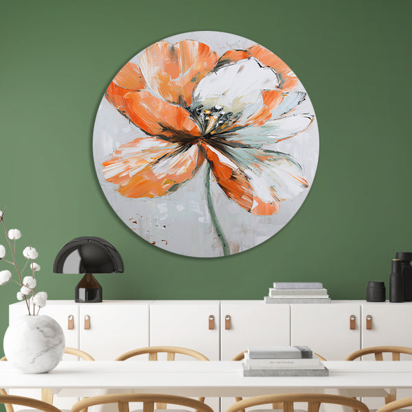 Abstracte bloem met levendige oranje tinten forex muurcirkel