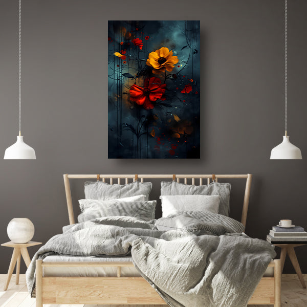 Abstracte bloemen in de regen canvas