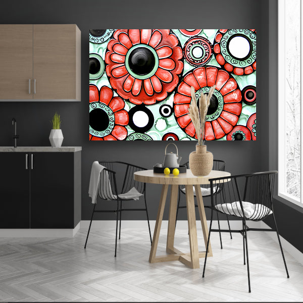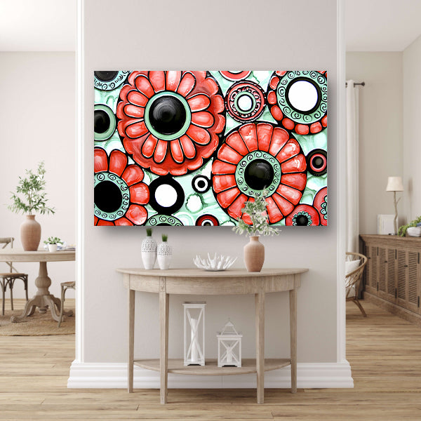 Abstracte bloemen in kleurrijke patronen canvas met baklijst