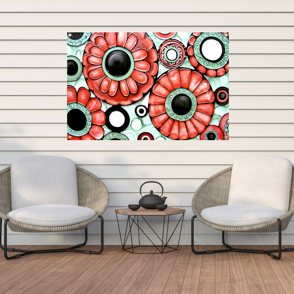 Abstracte bloemen in kleurrijke patronen tuinposter