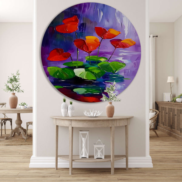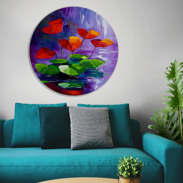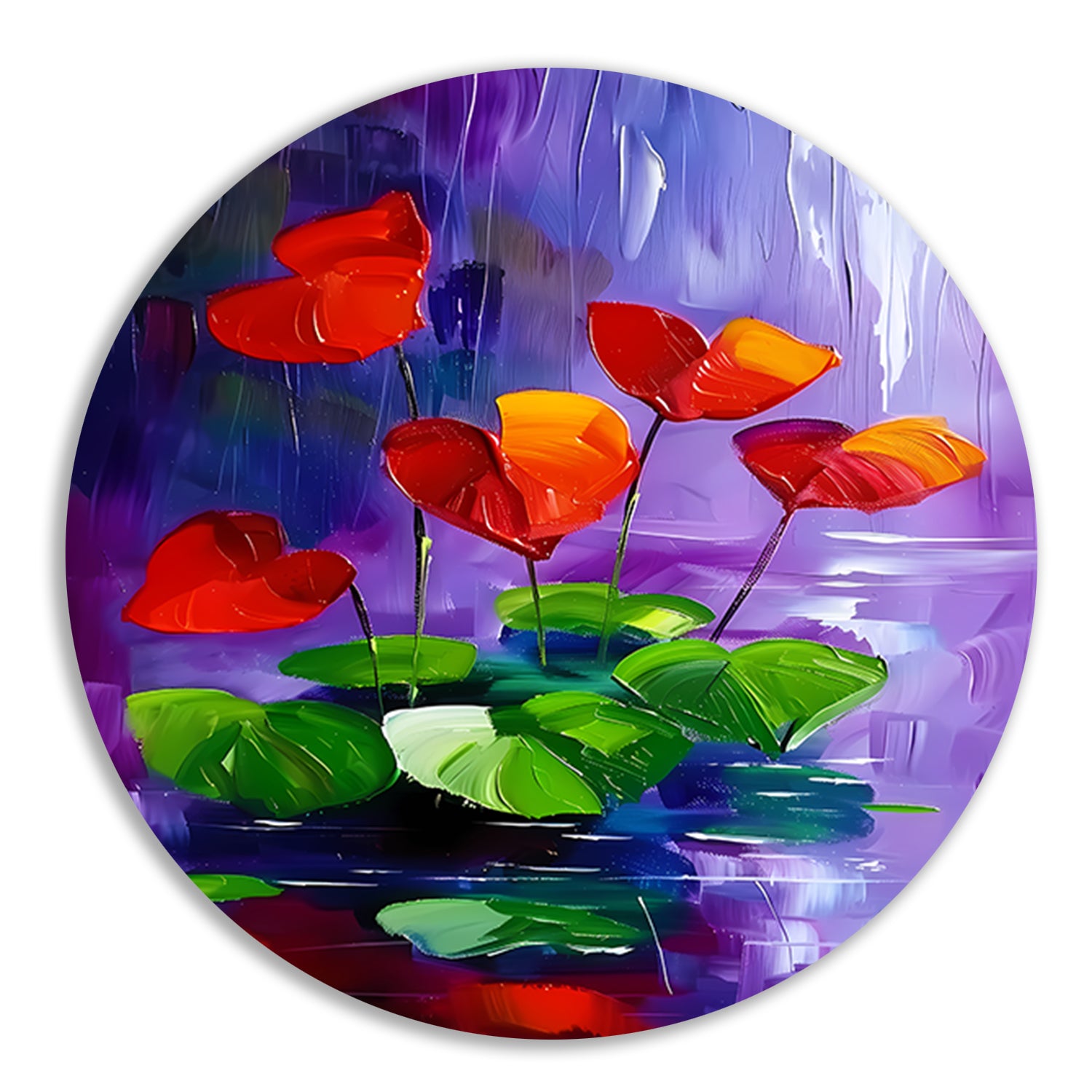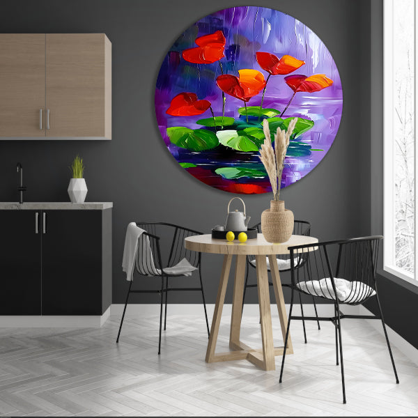 Abstracte bloemen in levendige kleuren schilderij aluminium muurcirkel