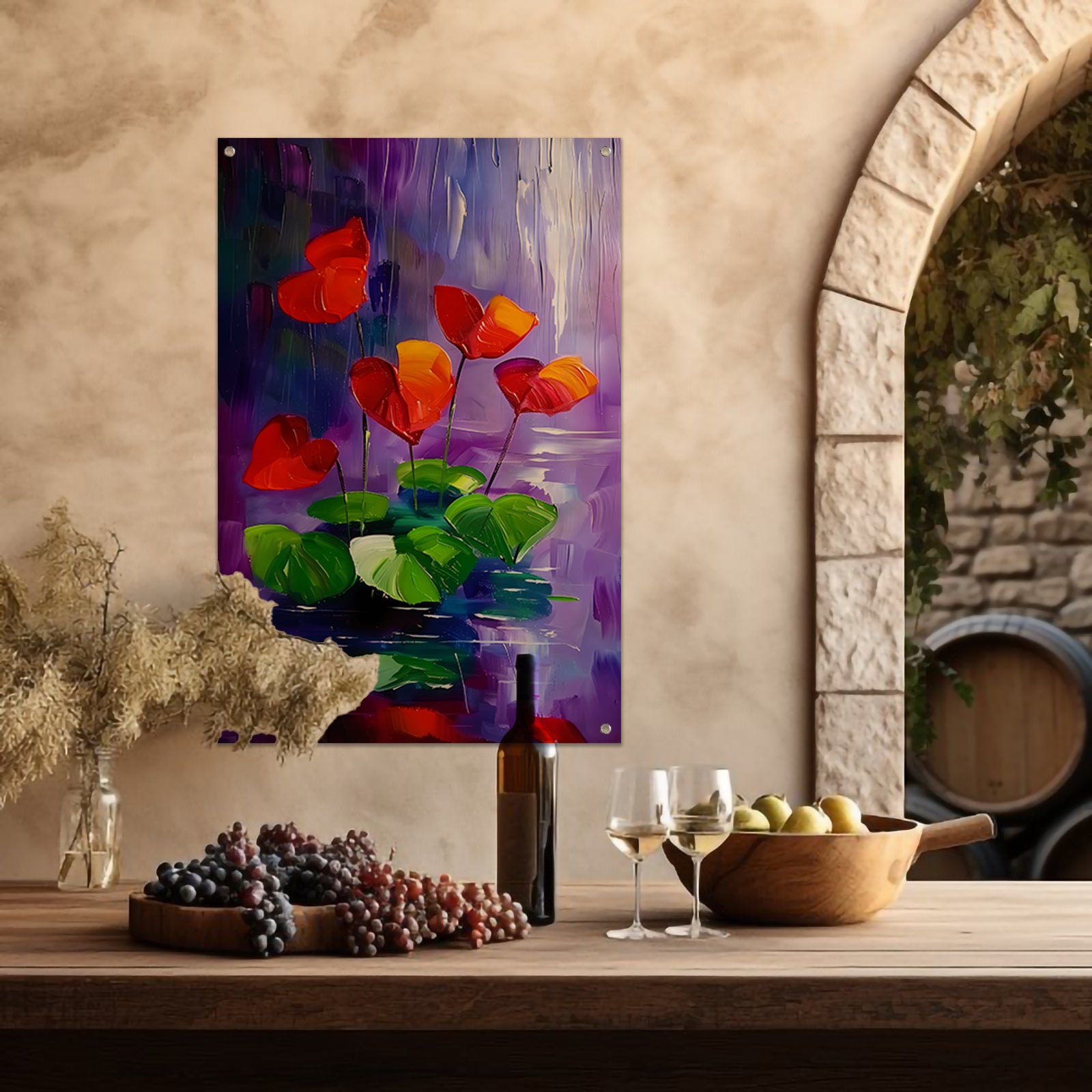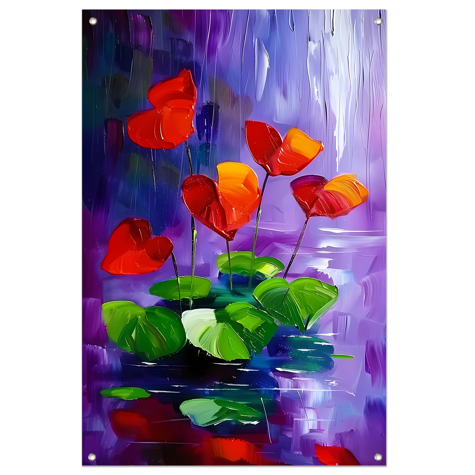 Abstracte bloemen in levendige kleuren schilderij tuinposter