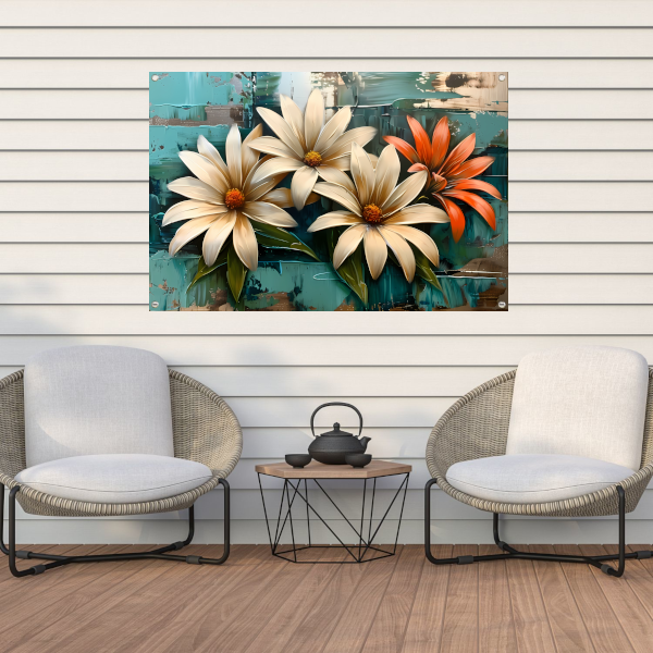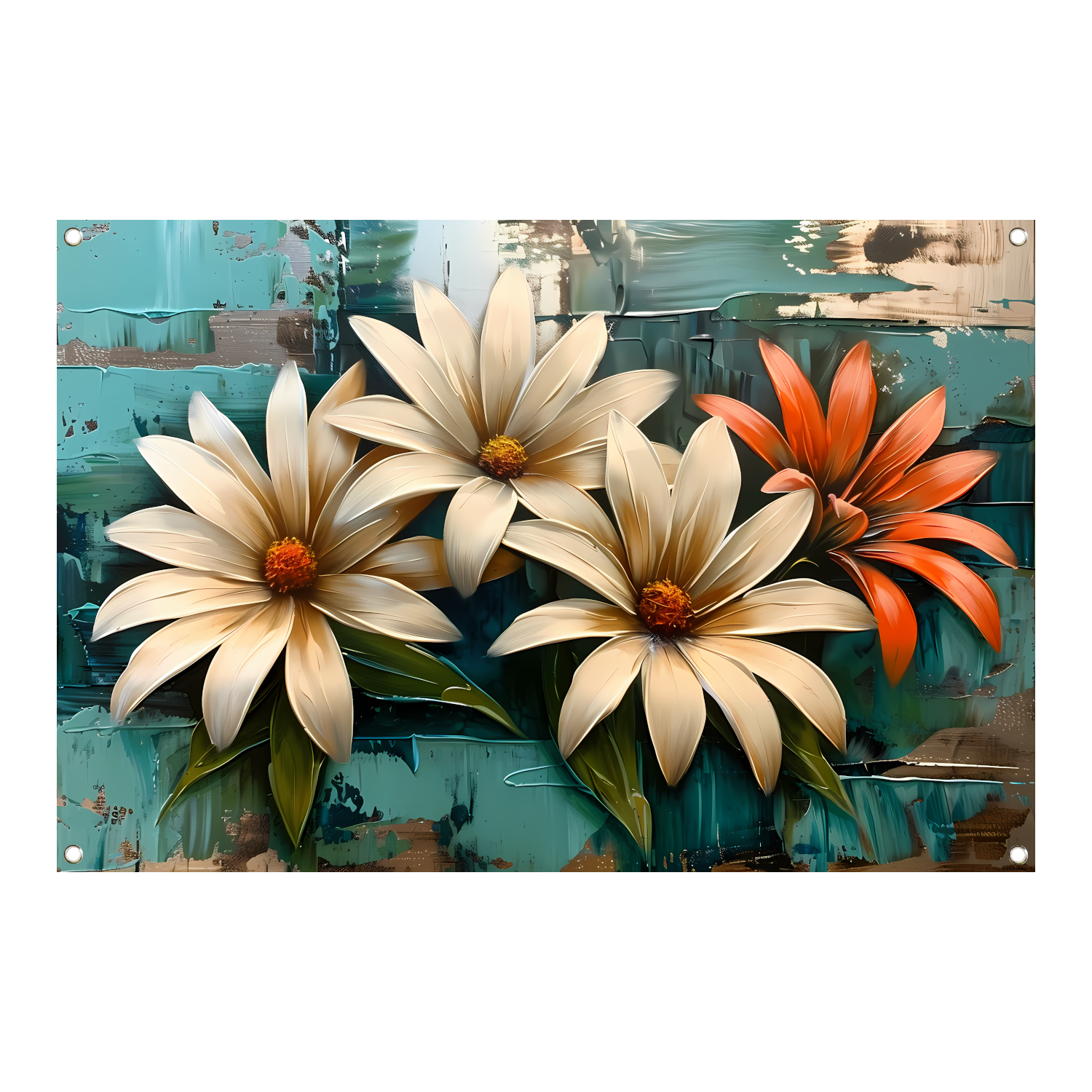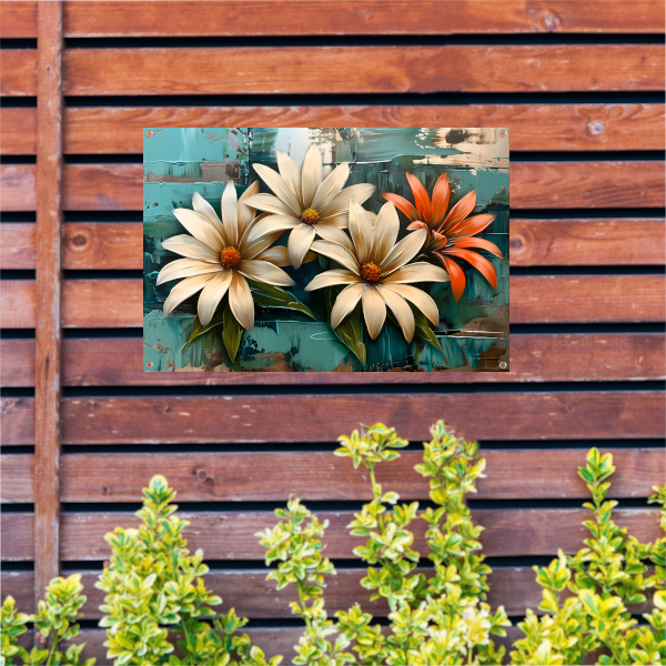 Onze tuinposters zijn UV- en waterbestendig, waardoor ze bestand zijn tegen zon en regen en hun kleuren langdurig mooi blijven. Alle tuinposters van De Muurdecoratie zijn voorzien van ringen in de hoeken, zodat je ze eenvoudig kunt ophangen. Let op: onze tuinposters worden niet met ophangsysteem geleverd.