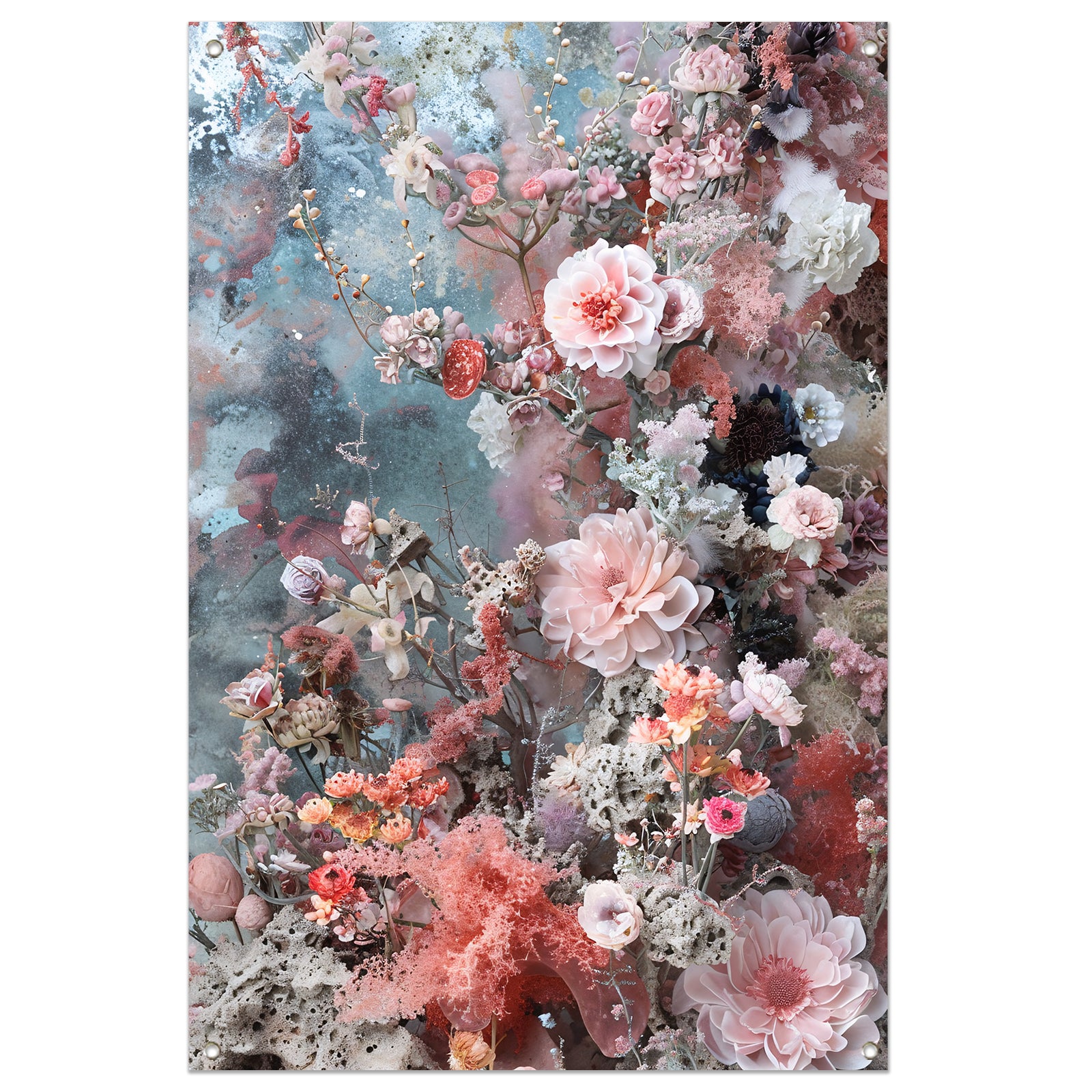 Abstracte bloemenzee met verf tuinposter