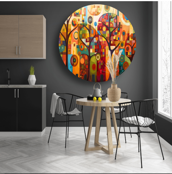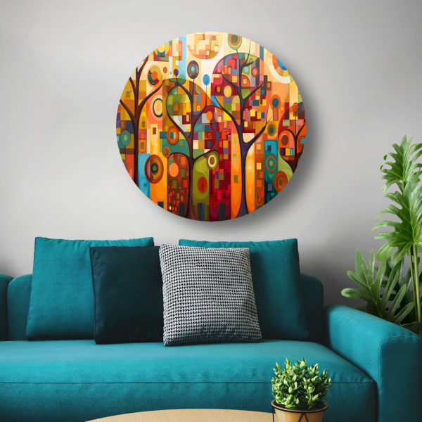Abstracte bomen in stedelijke kleurenpracht forex muurcirkel