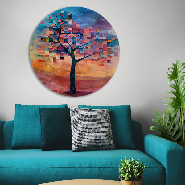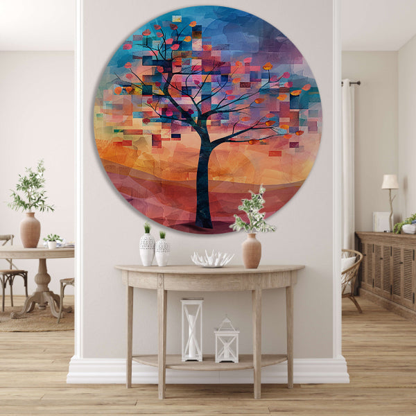 Abstracte boom in kleurrijk landschap forex muurcirkel