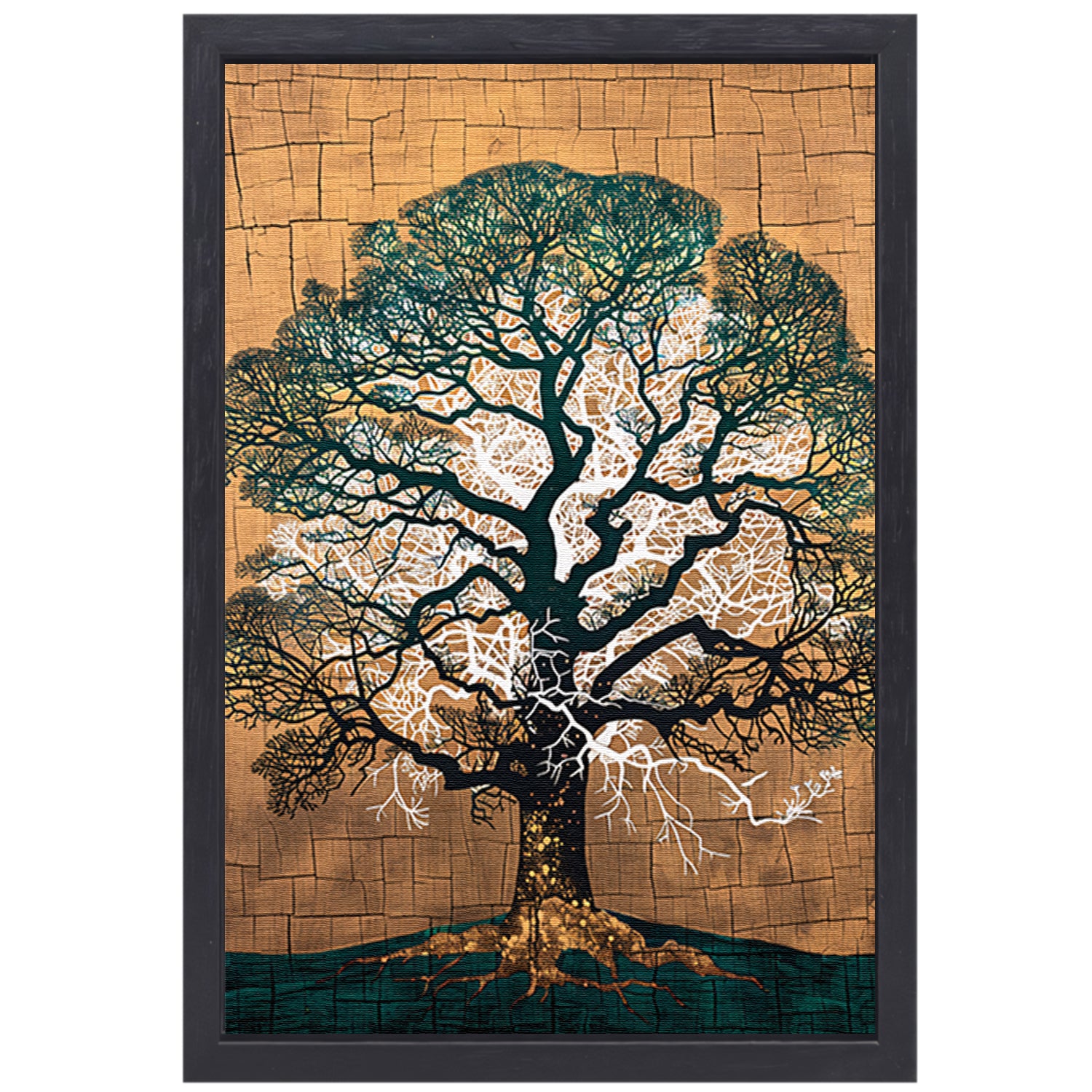 Abstracte boom met kleurrijke achtergrond canvas met baklijst