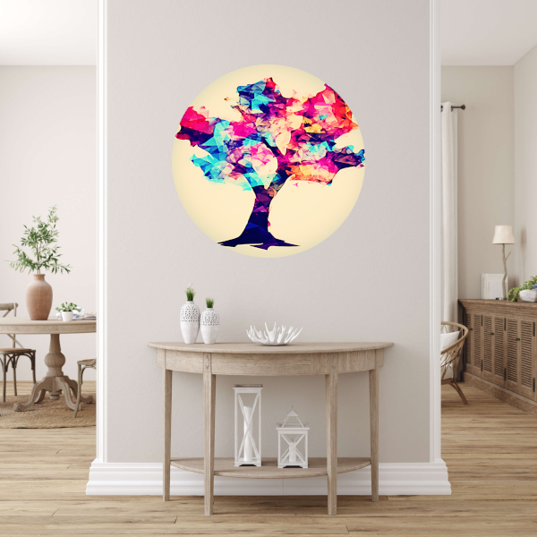 Abstracte Boom met Kleurrijke Bladeren aluminium muurcirkel