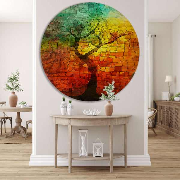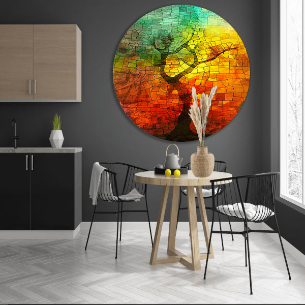 Abstracte boom met kleurrijke patronen aluminium muurcirkel