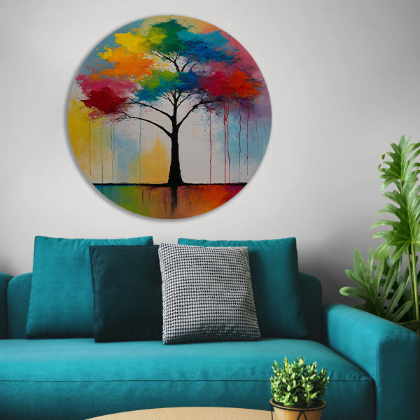Abstracte Boom met Kleurrijke Uitspattingen forex muurcirkel