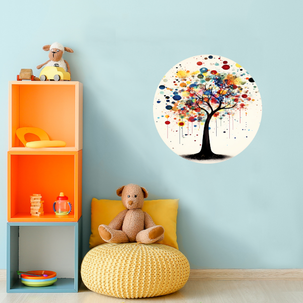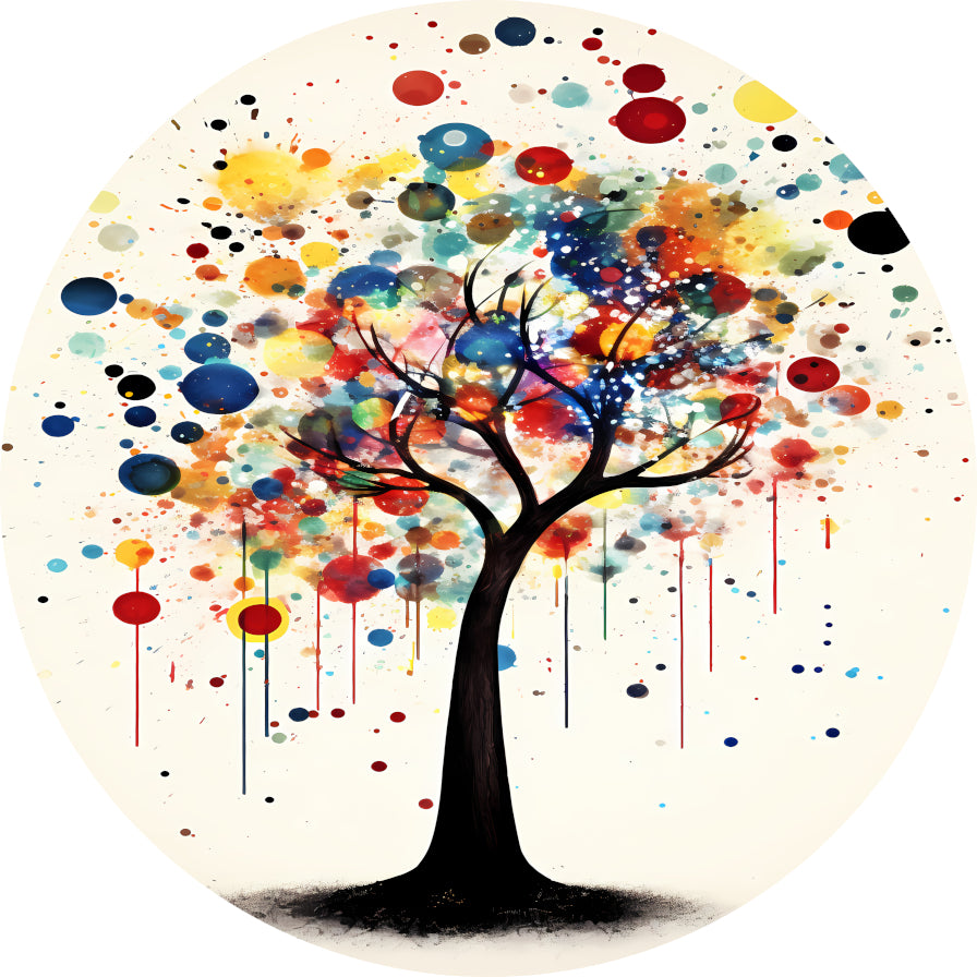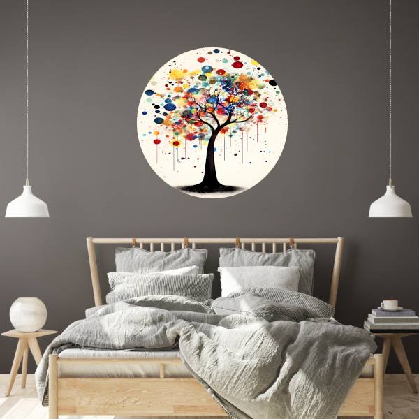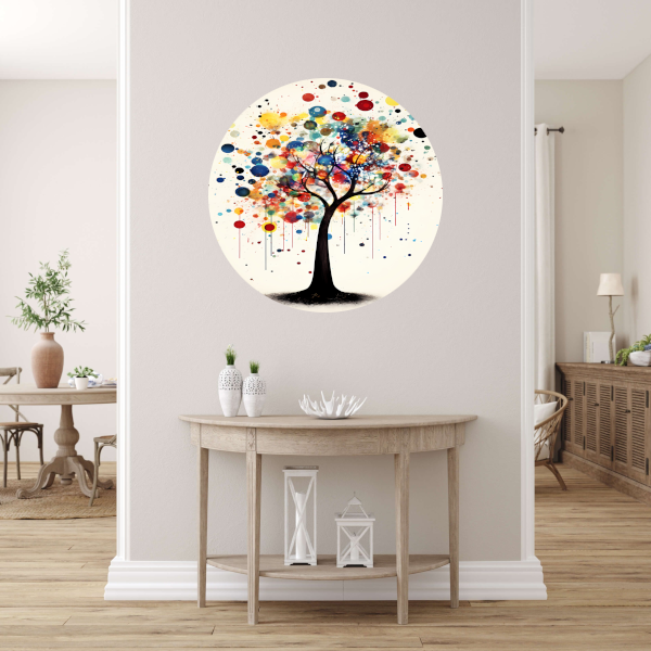 Abstracte Boom met Kleurrijke Vlekken aluminium muurcirkel