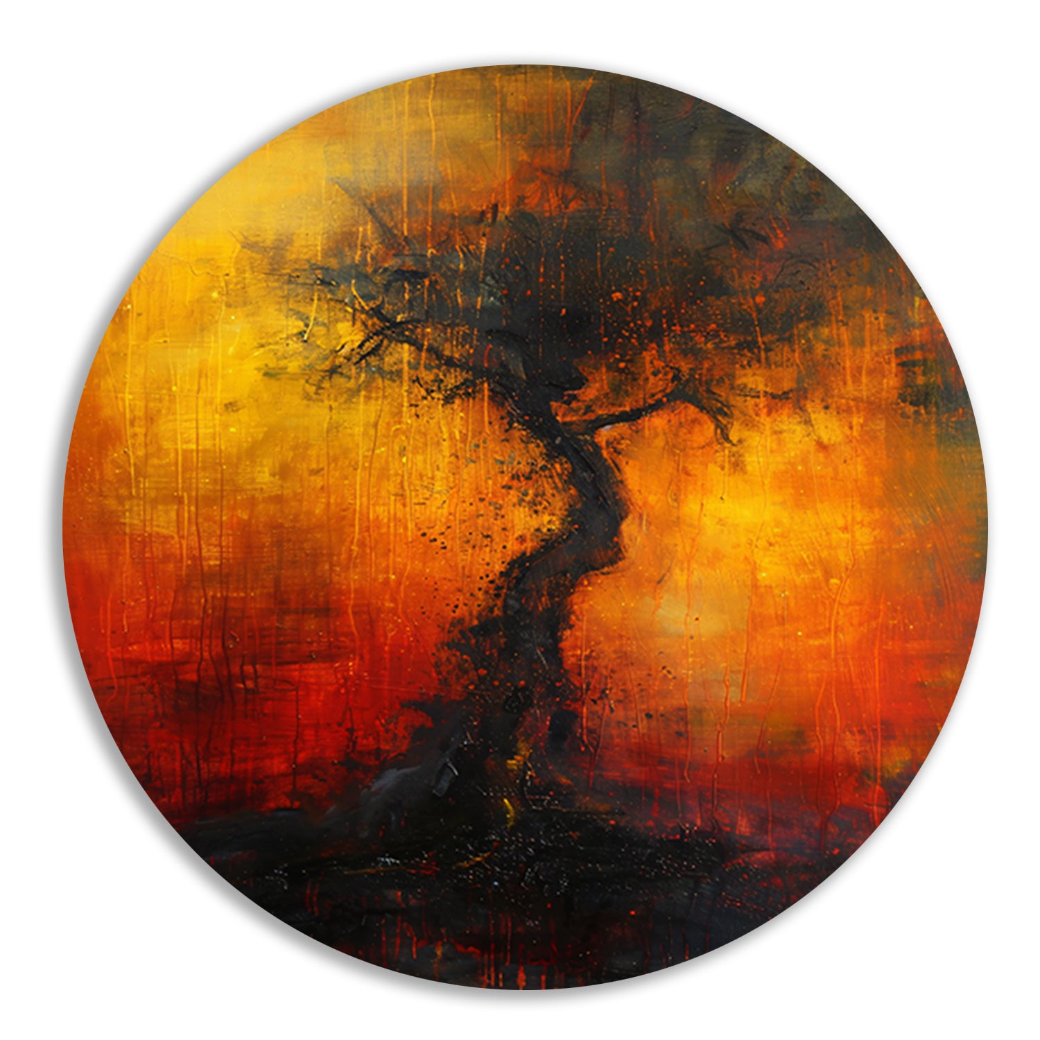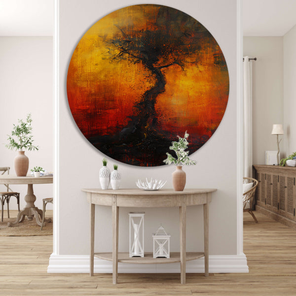 Abstracte Boom omgeven door Vurige Kleuren forex muurcirkel
