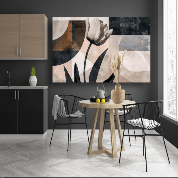 Een canvas met baklijst geeft je interieur een luxe en afgewerkte uitstraling. Onze baklijsten zijn gemaakt van hoogwaardig hout en verkrijgbaar in zwart met een zichtbare houtnerfstructuur, wat een moderne en elegante look biedt. De lijst heeft een framedikte van 3,5 cm. De montage van het canvas in de baklijst en aan de muur is eenvoudig.