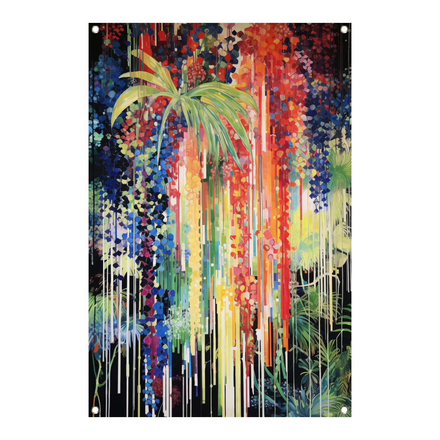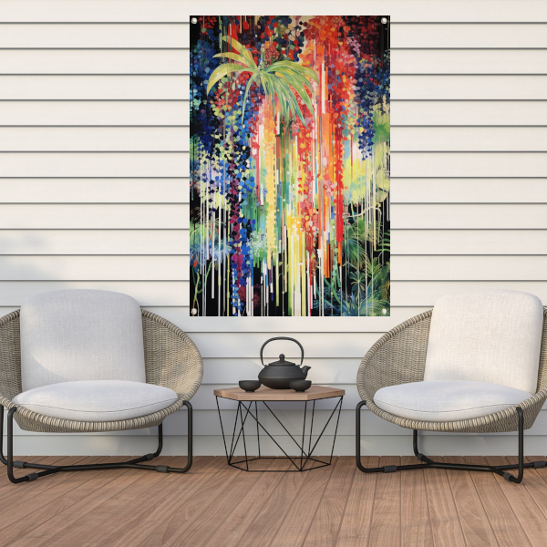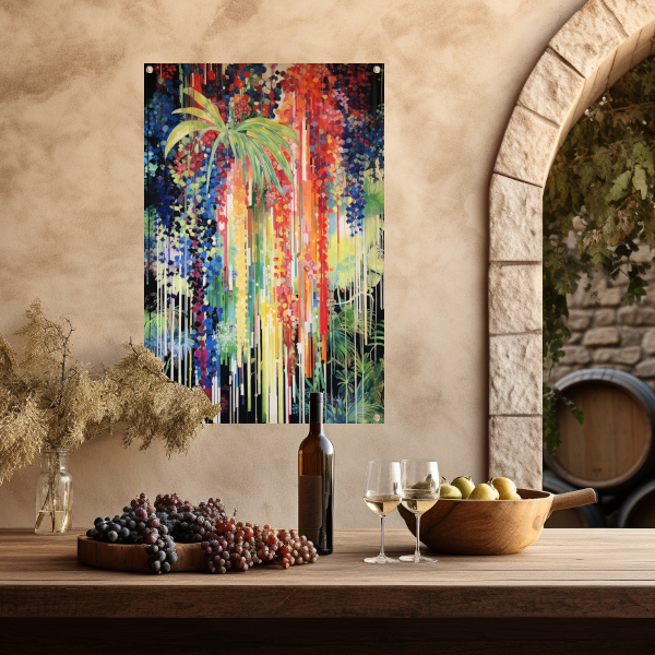 Kortom, de "Abstracte Dans van Kleur en Natuur tuinposter" is een must-have voor iedereen die zijn leefomgeving wil verfraaien. Met verschillende beschikbare formaten en een innovatieve uitstraling zal deze tuinposter zeker een statement maken in uw tuin of op uw balkon. Haal de natuur en de kunst in huis en laat de abstracte dans van kleuren uw buitenruimte tot leven brengen!