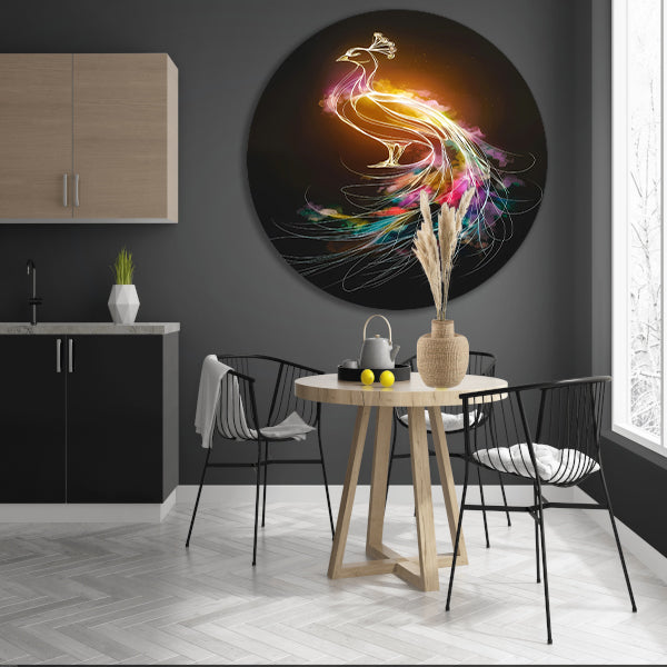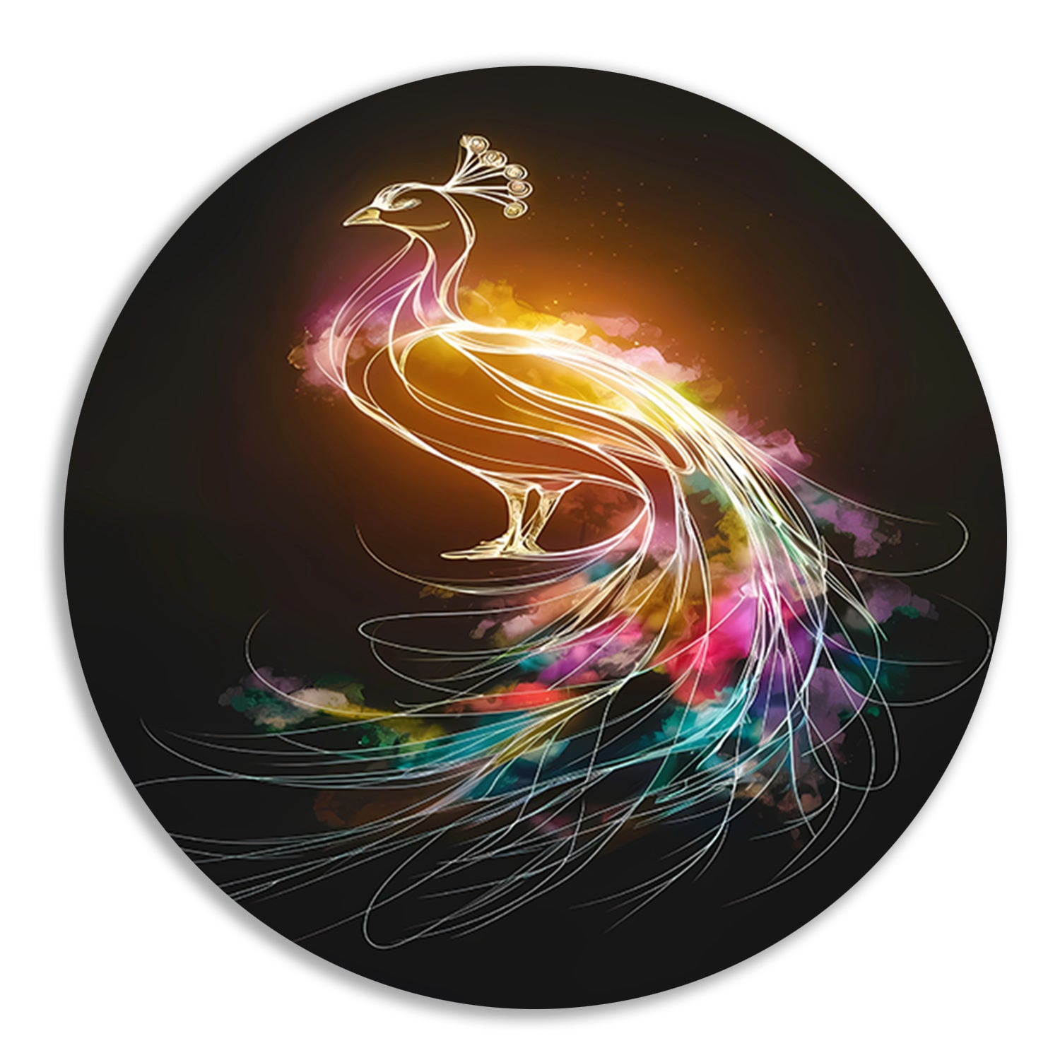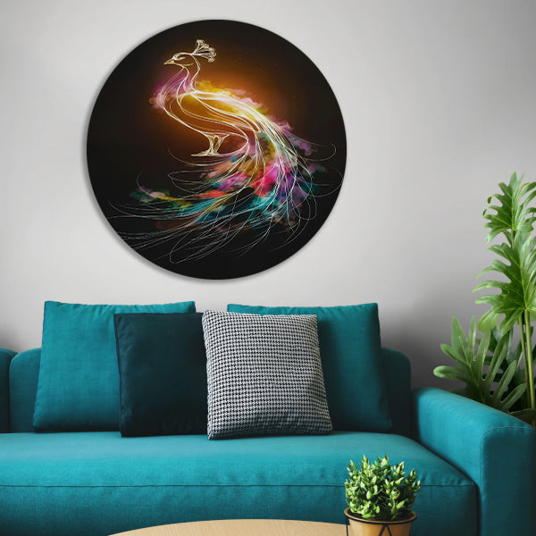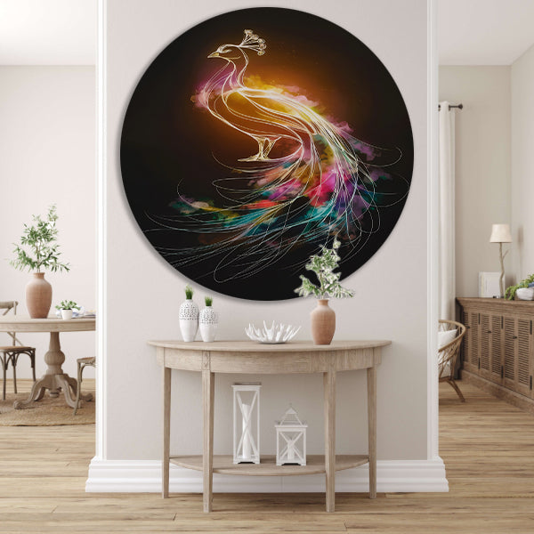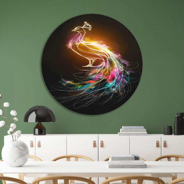 Abstracte Dans van Kleurrijke Pauwlijnen aluminium muurcirkel