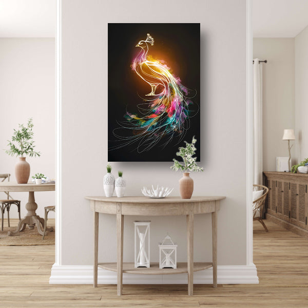 Abstracte Dans van Kleurrijke Pauwlijnen canvas met baklijst