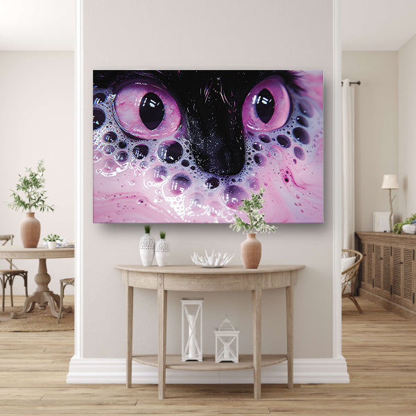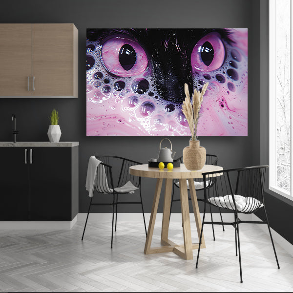 Abstracte dierenogen met kleurrijke zeepbellen canvas met baklijst