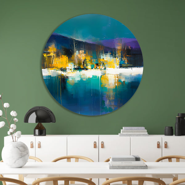 Abstracte digitale kunst van kleurrijk landschap aluminium muurcirkel