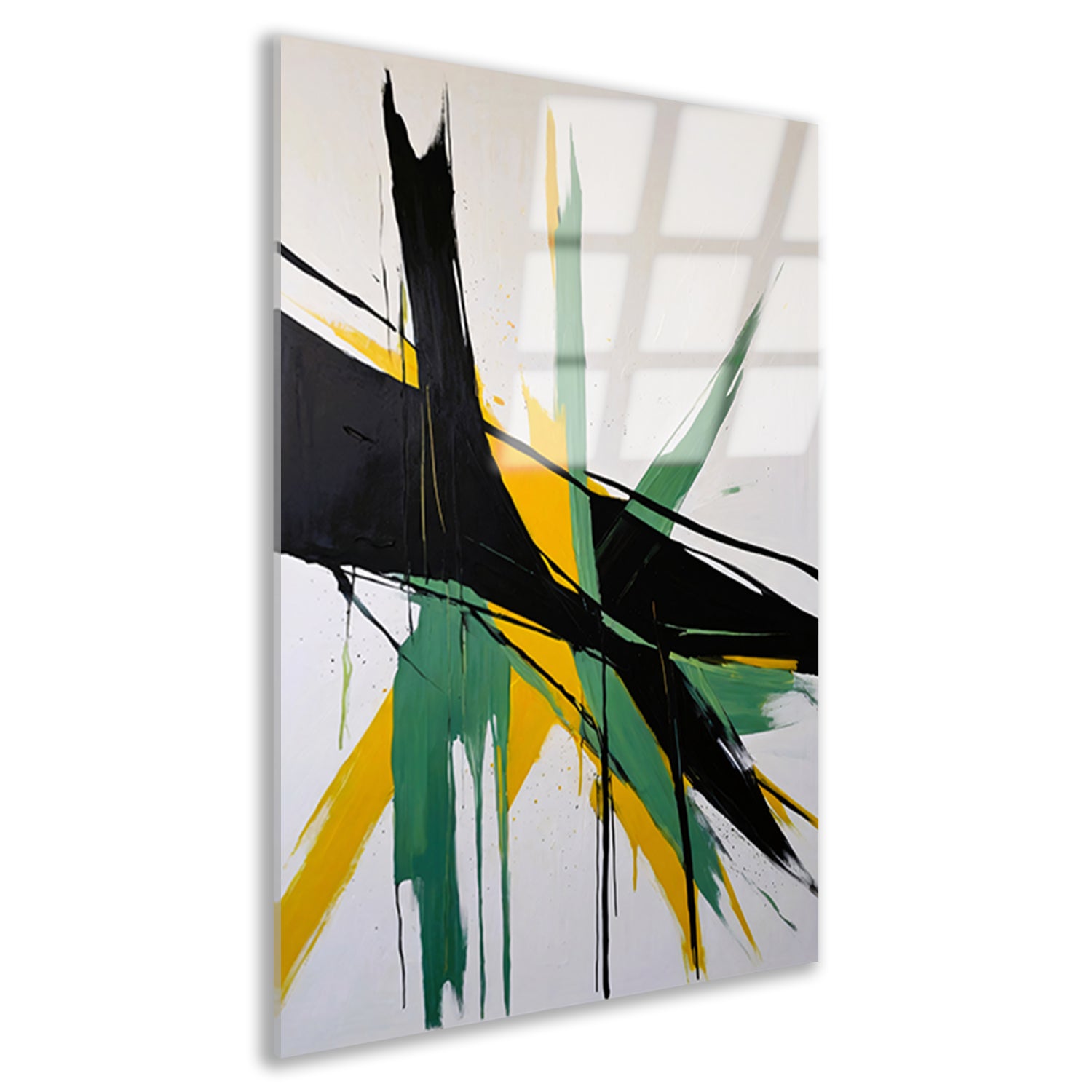 Abstracte dynamiek in zwart, wit en geel acrylglas