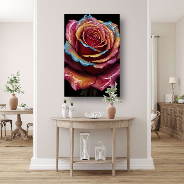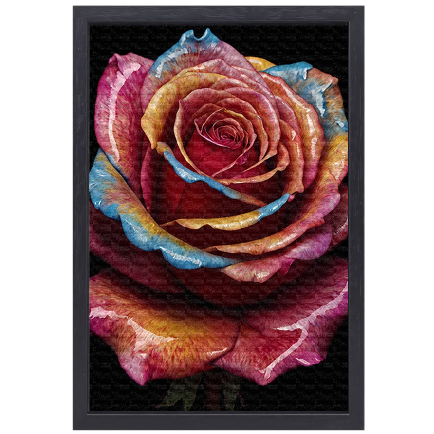 Abstracte explosie van kleurrijke rozenpracht canvas met baklijst