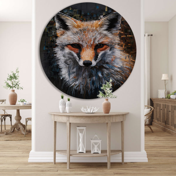 Abstracte Expressie van een Kleurrijke Vos aluminium muurcirkel