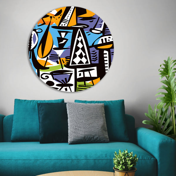 Abstracte Figuren en Vazen aluminium muurcirkel