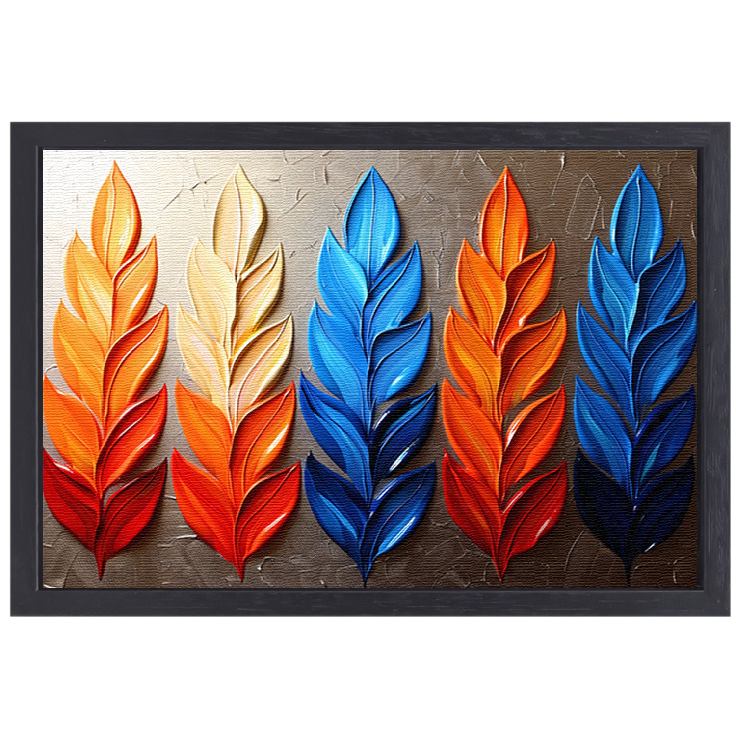Abstracte gekleurde bladeren op neutrale achtergrond canvas met baklijst