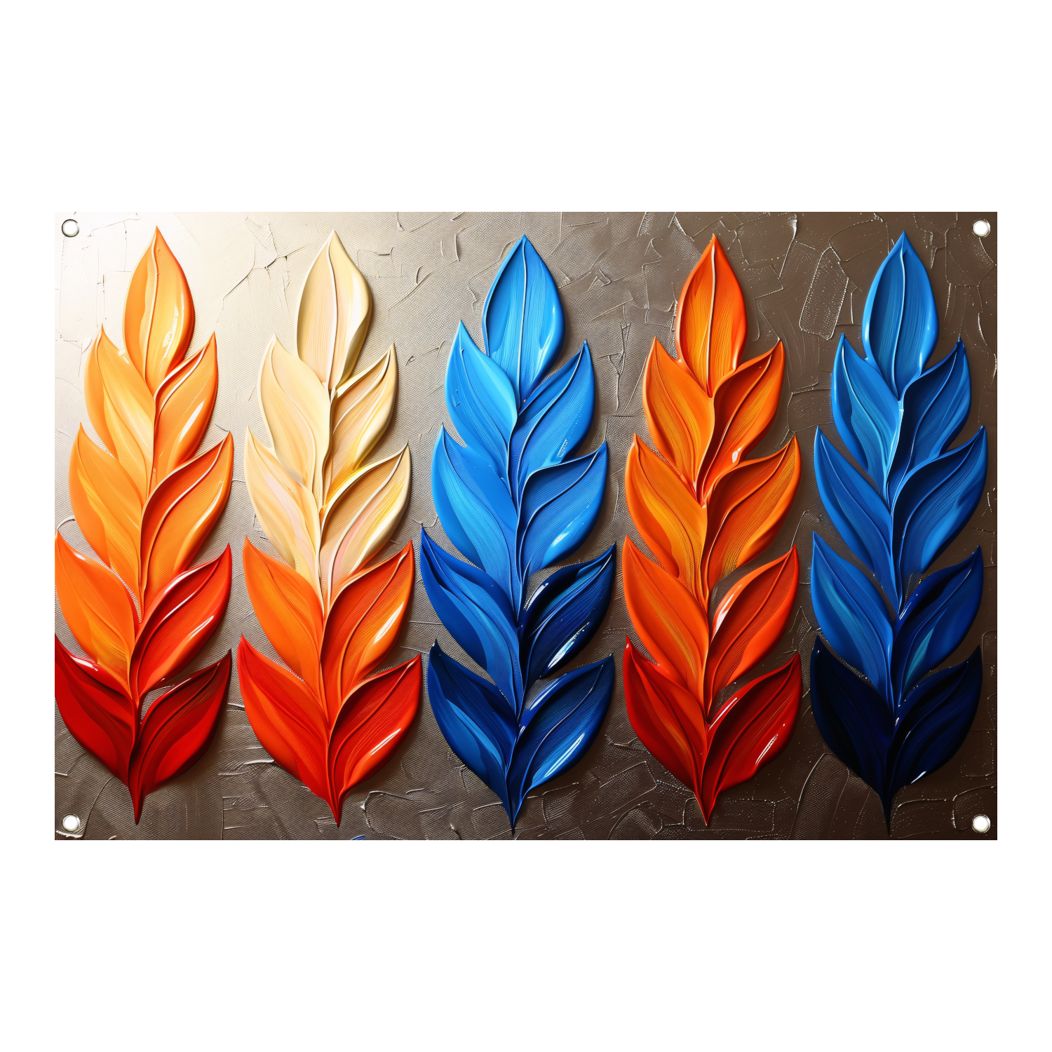 Abstracte gekleurde bladeren op neutrale achtergrond tuinposter