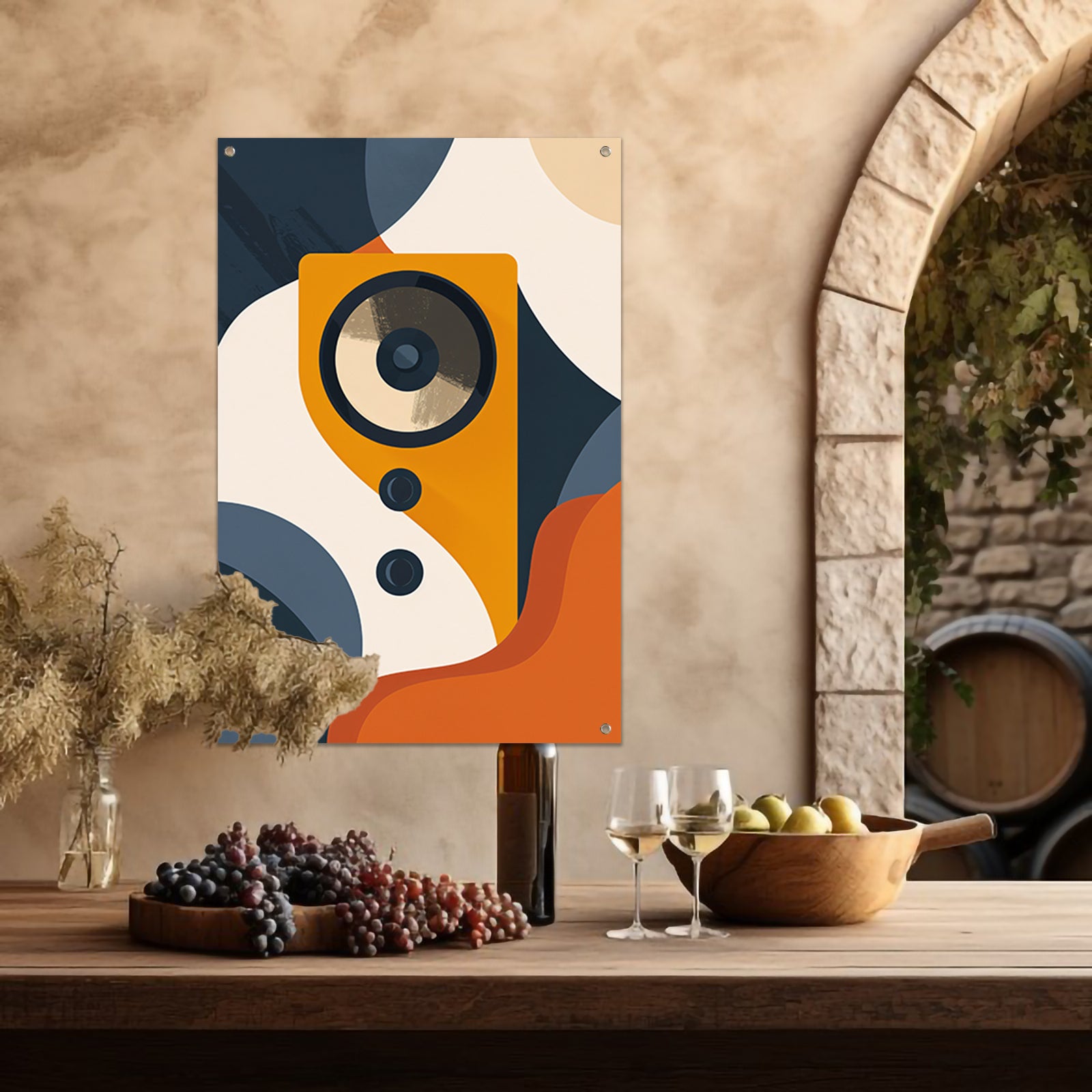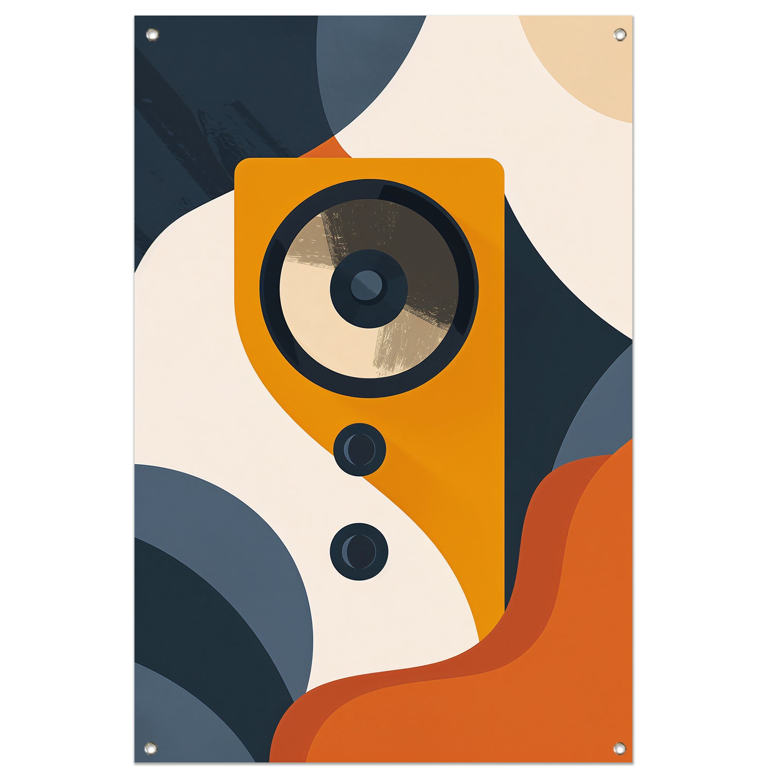 Abstracte Gele Luidspreker met Vormen tuinposter