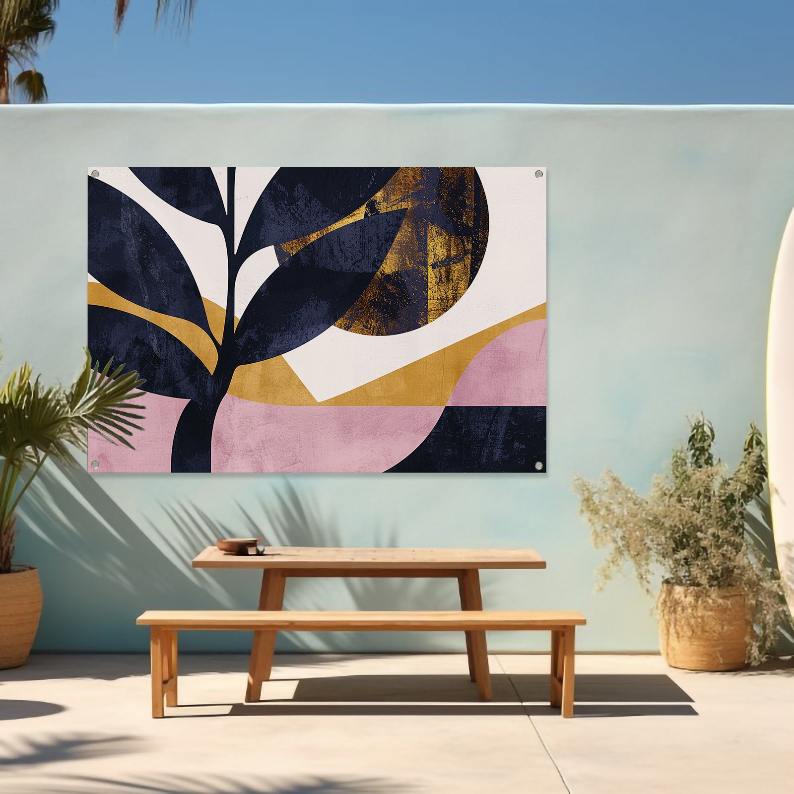 Onze tuinposters zijn UV- en waterbestendig, waardoor ze bestand zijn tegen zon en regen en hun kleuren langdurig mooi blijven. Alle tuinposters van De Muurdecoratie zijn voorzien van ringen in de hoeken, zodat je ze eenvoudig kunt ophangen. Let op: onze tuinposters worden niet met ophangsysteem geleverd.