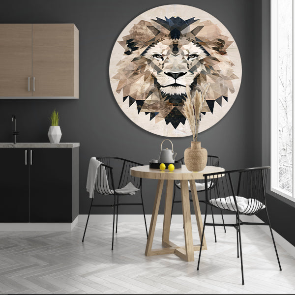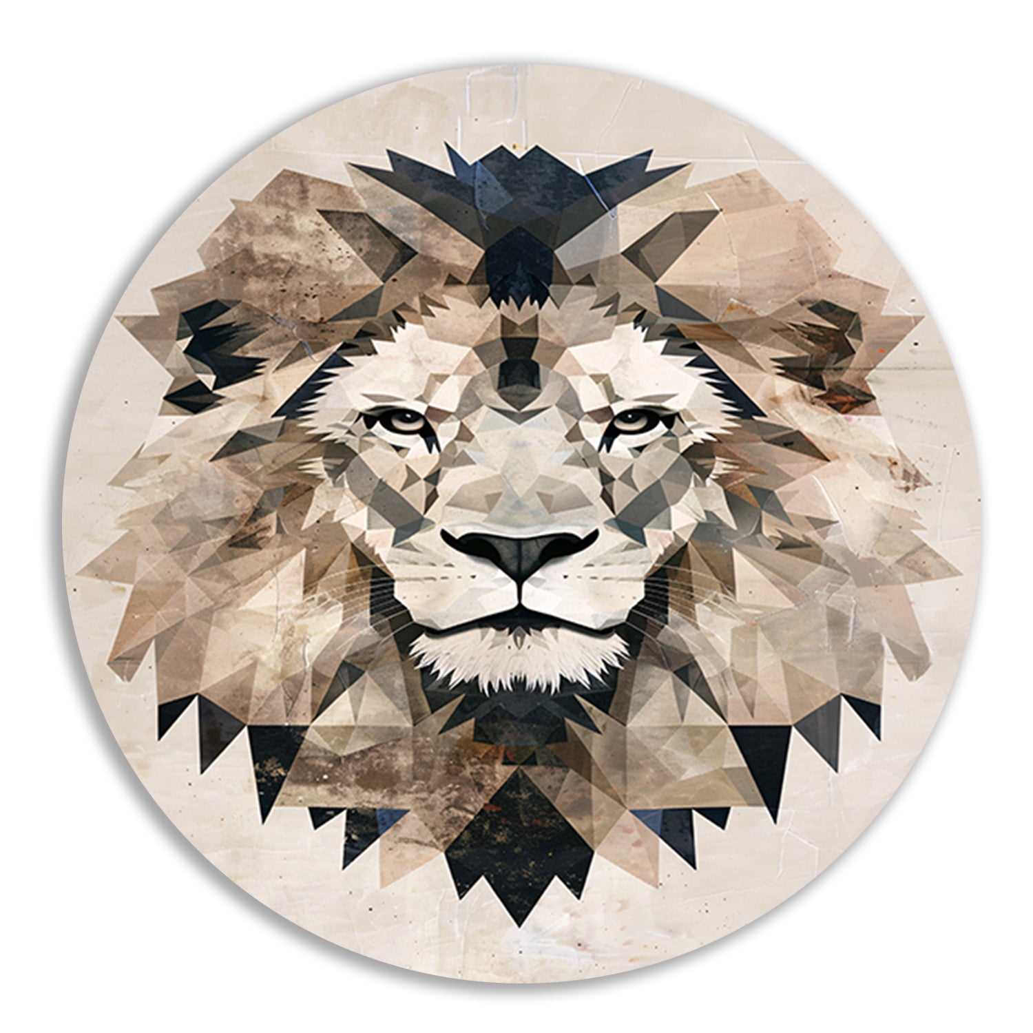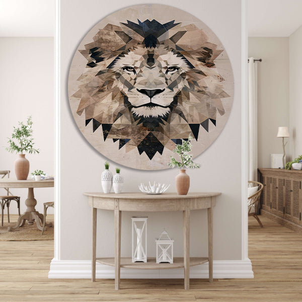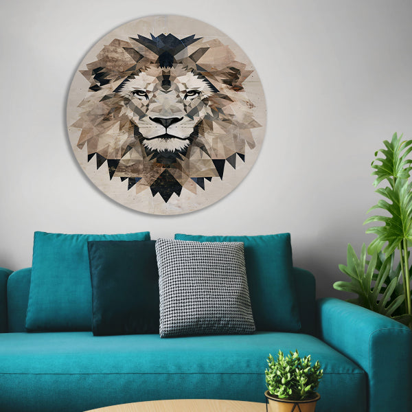 Abstracte geometrische leeuw in sepia aluminium muurcirkel