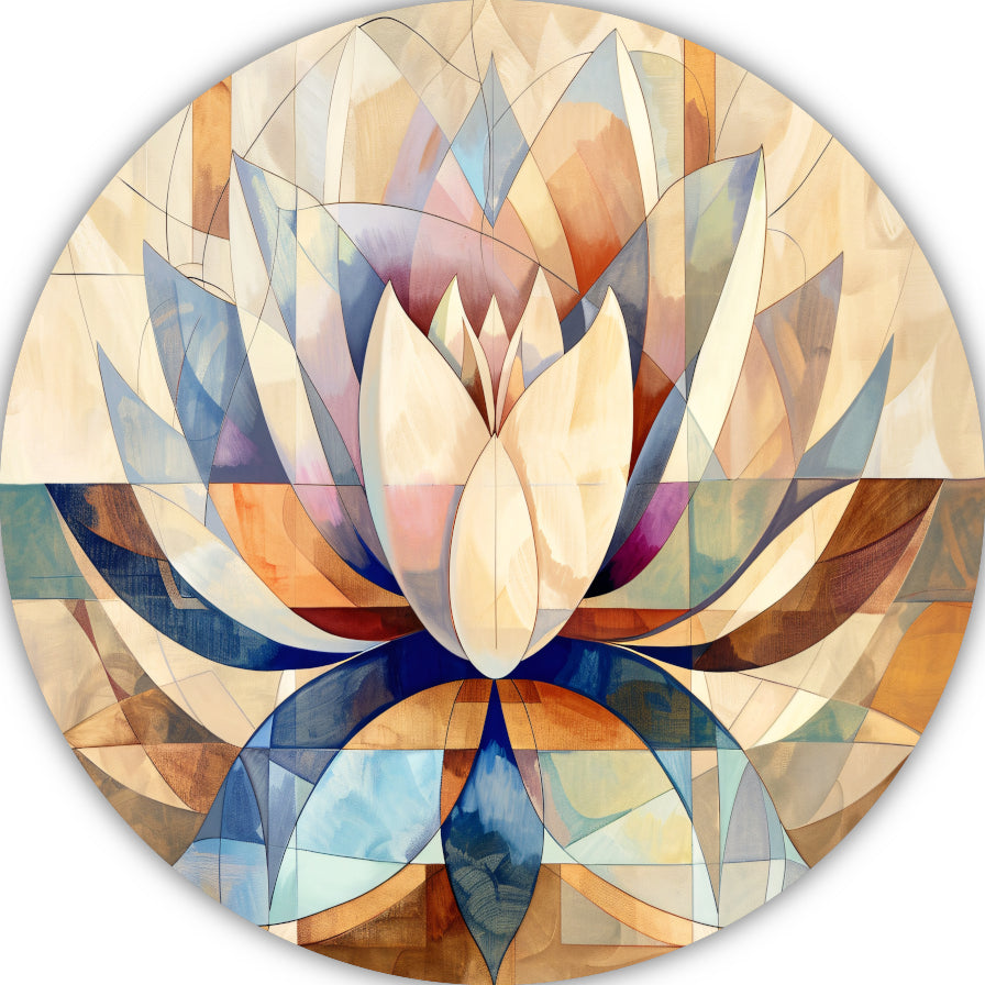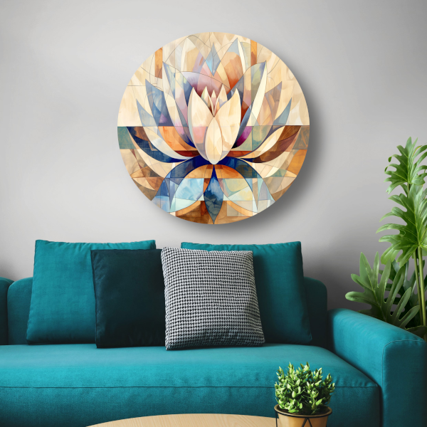 Abstracte Geometrische Lotus in Kleur aluminium muurcirkel