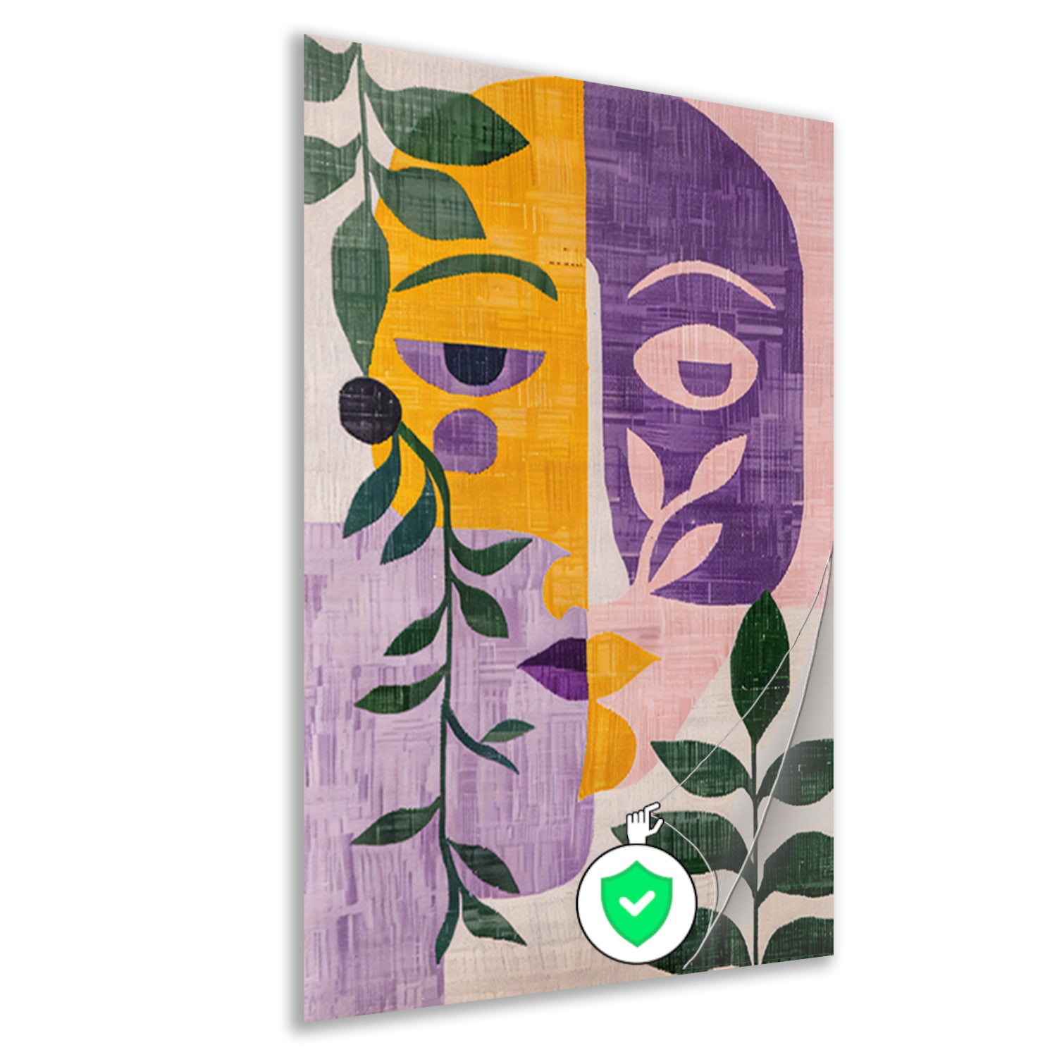 Abstracte gezichten met bladeren in kleur poster