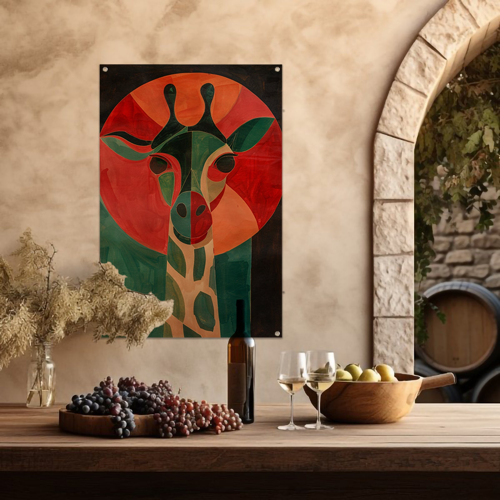 Abstracte giraffe in kleurrijke geometrische vormen tuinposter