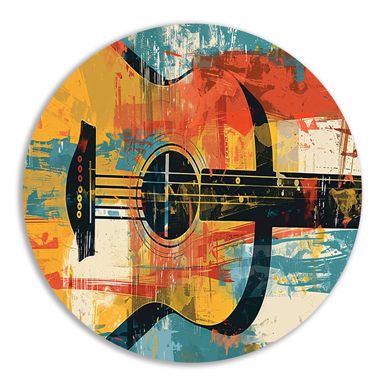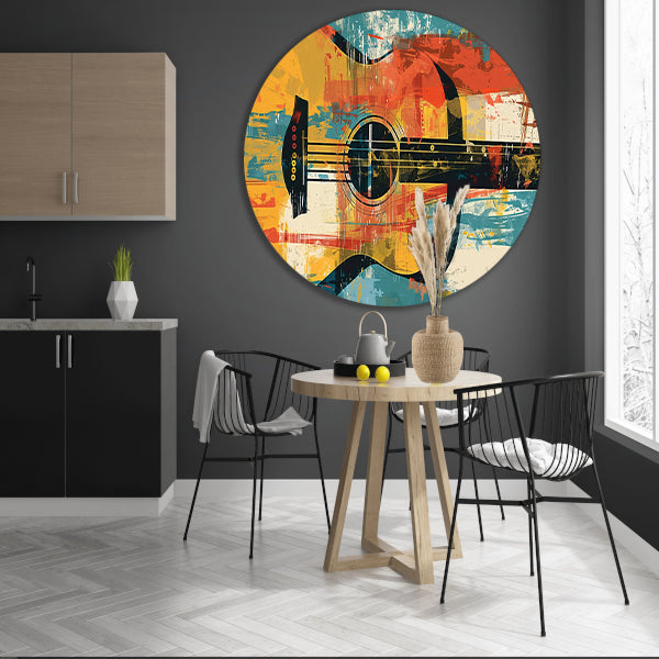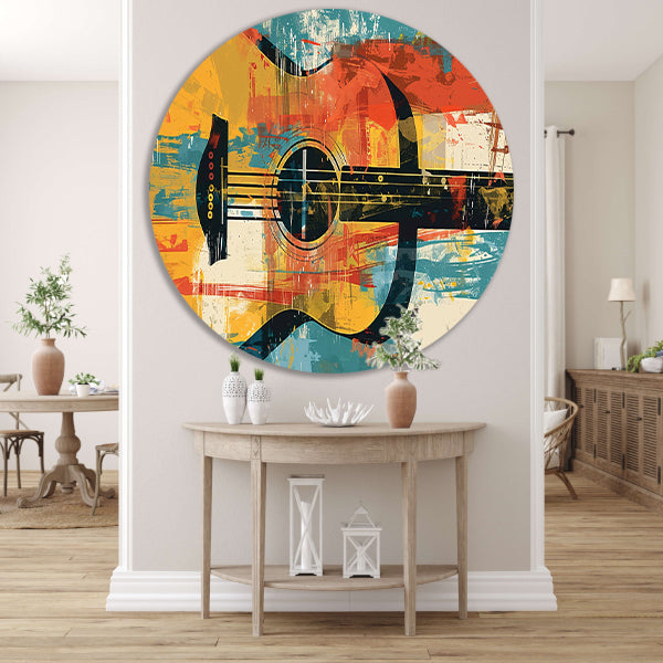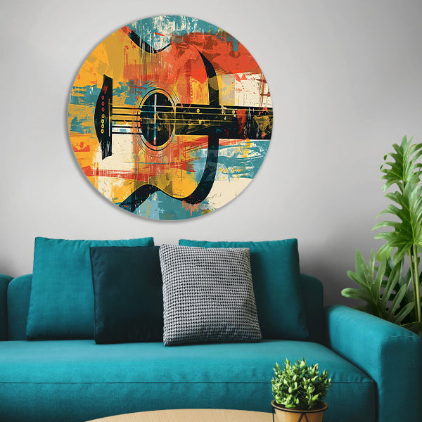 Abstracte gitaar in levendige kleuren aluminium muurcirkel