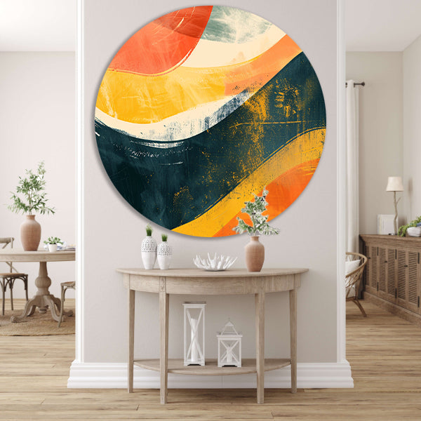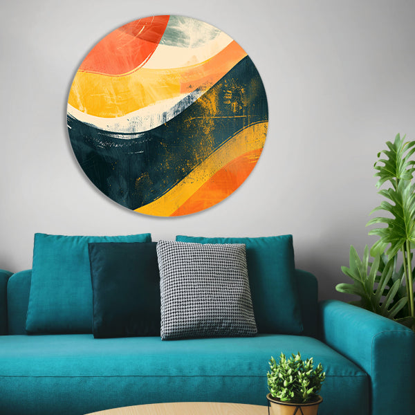 Abstracte Golven van Kleurrijke Energie aluminium muurcirkel