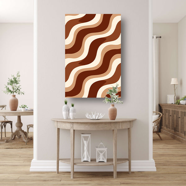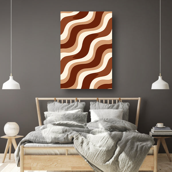 Abstracte golvende patronen in bruine tinten canvas met baklijst