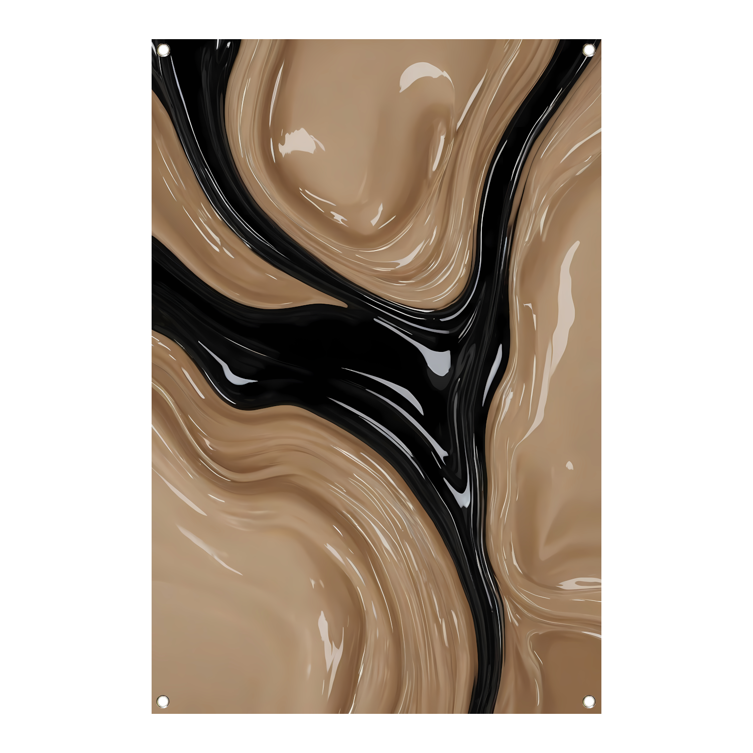 Abstracte Golvende Vormen in Beige en Zwart tuinposter