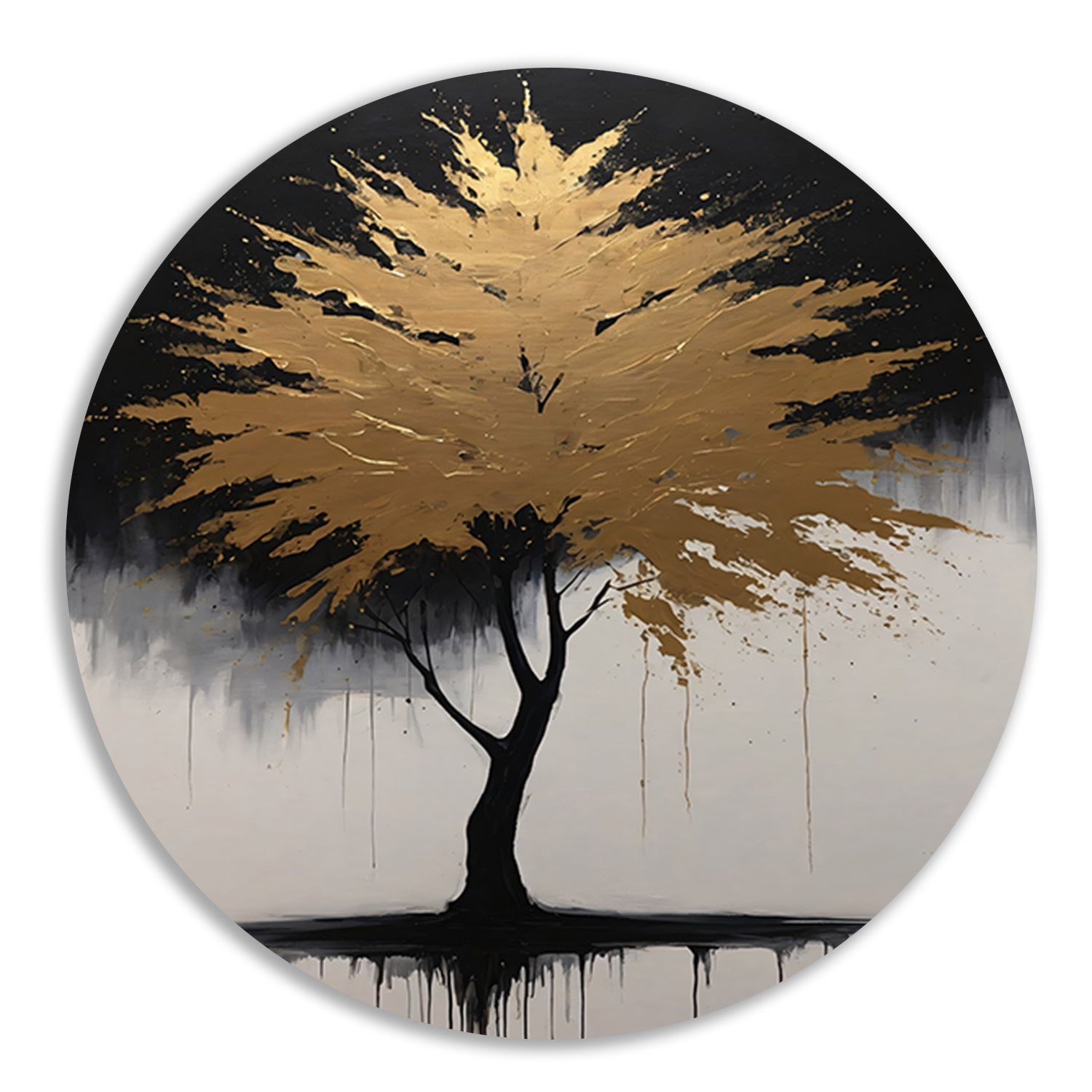 Abstracte Gouden Boom in Monochrome Reflectie aluminium muurcirkel