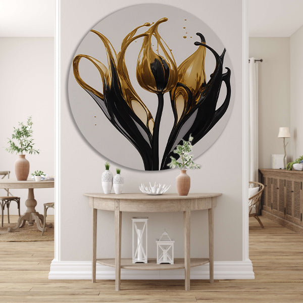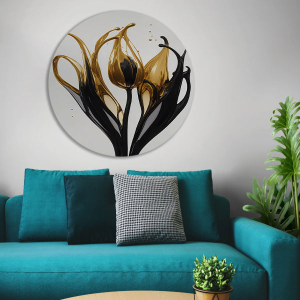 Abstracte Gouden en Zwarte Tulpen Silhouet aluminium muurcirkel