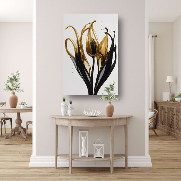 Abstracte Gouden en Zwarte Tulpen Silhouet poster