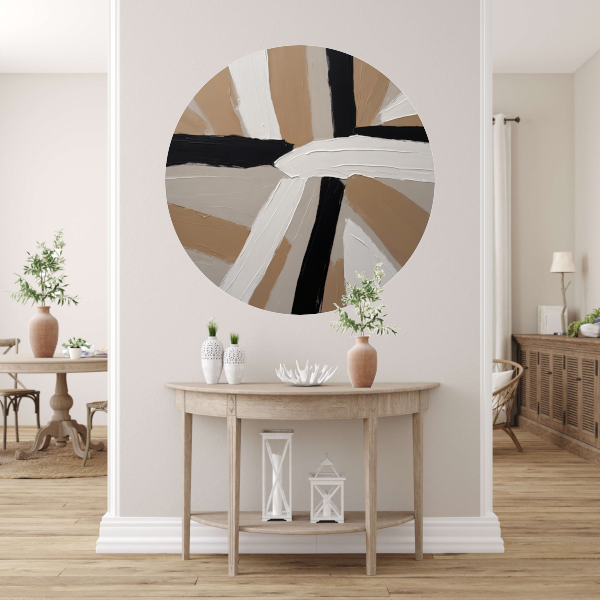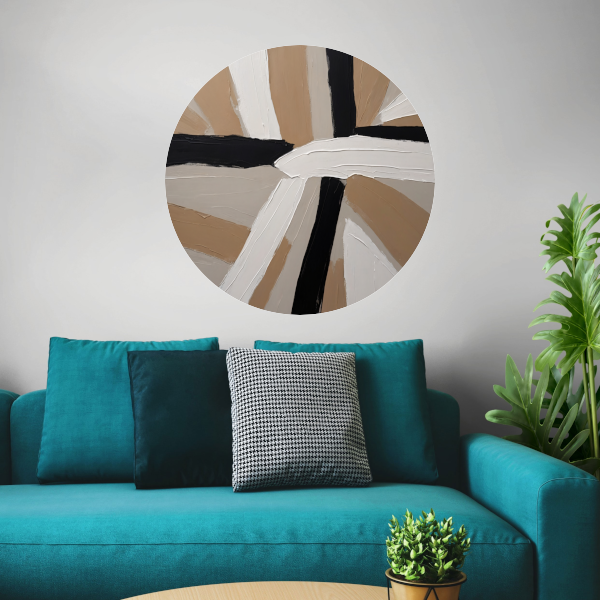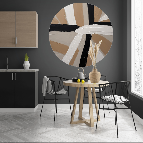 Abstracte Harmonie in Beige, Zwart en Wit aluminium muurcirkel