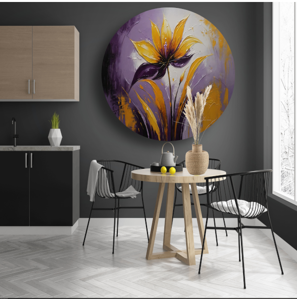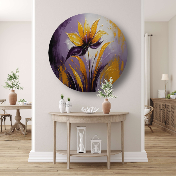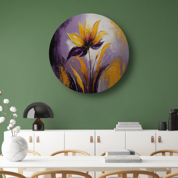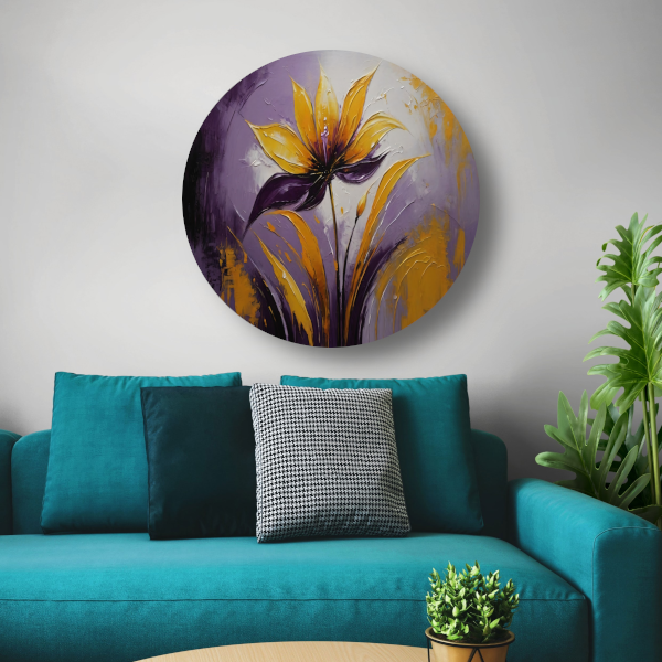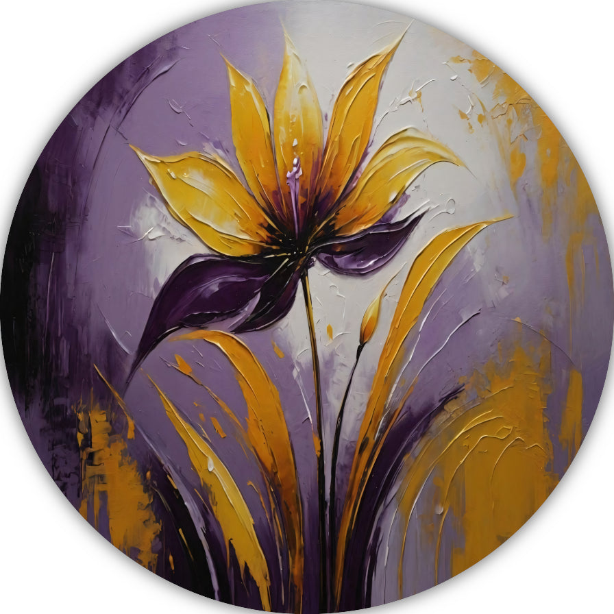 Abstracte Impasto Bloem in Paarse Schakeringen aluminium muurcirkel