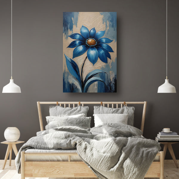 Abstracte Indigo Bloem met Dynamische Bladeren canvas met baklijst