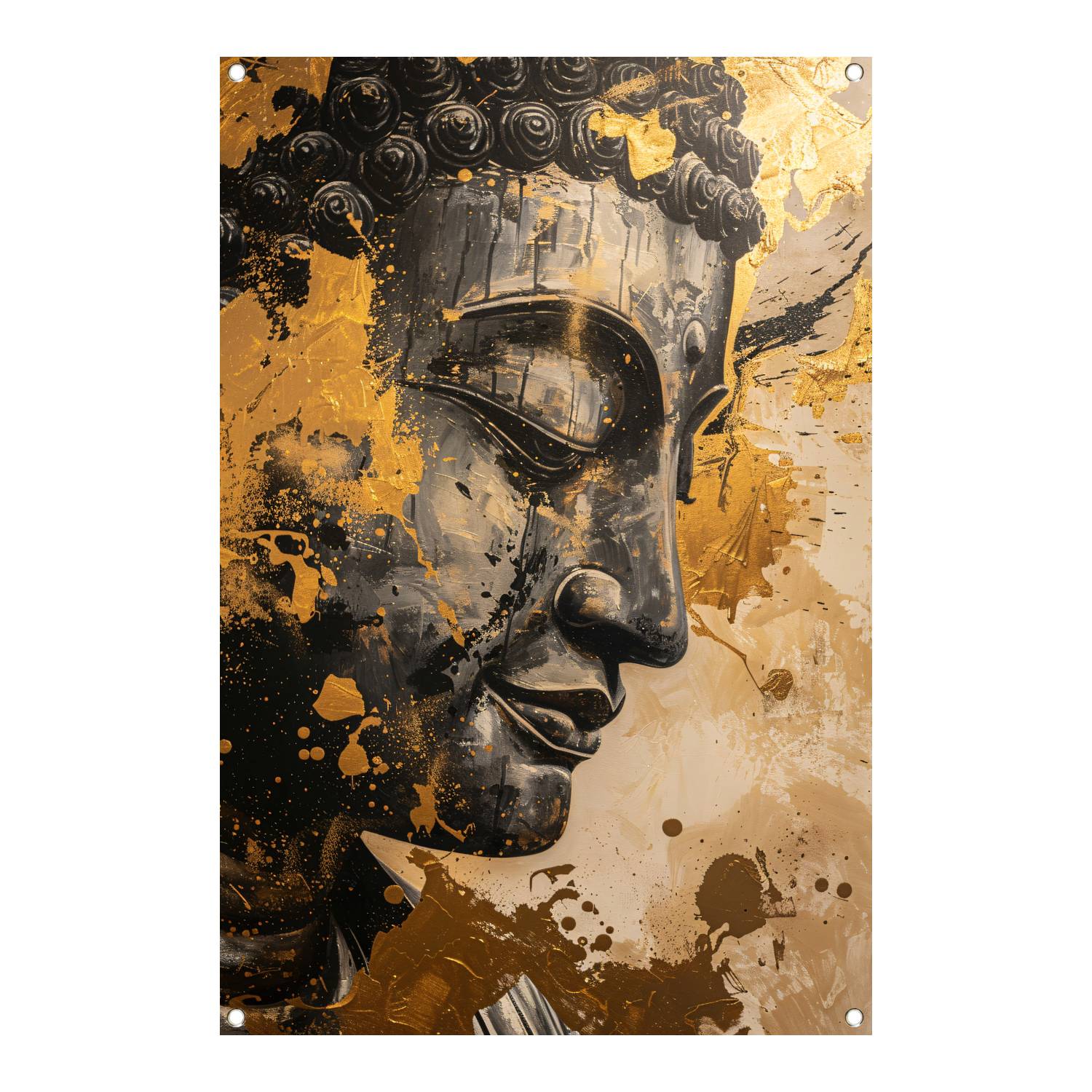 Abstracte interpretatie van Boeddha met gouden tinten tuinposter